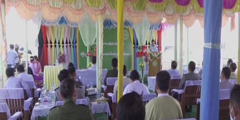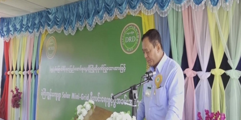 This project in PalGyiKyun Village of Hinthada Township is to mark the 75th anniversary of Union Day. The Union Minister and the Chief Minister made remarks, and the National Electrification Project and this SOLAR MINI GRID project were explained.