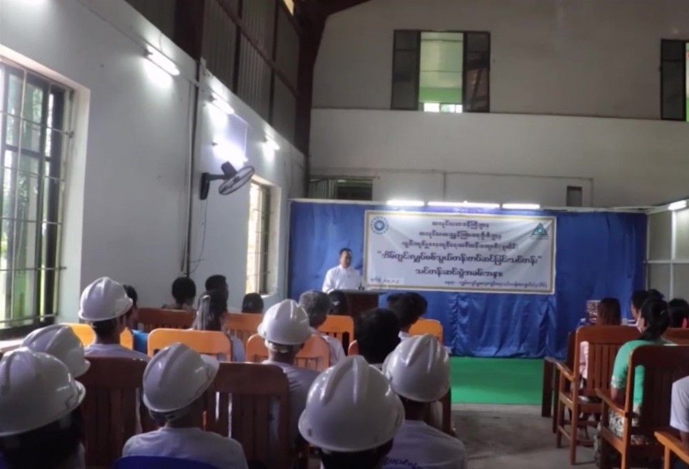 This training course completion ceremony was held at the Skills Training Center under the Department of Labour in Pathein. Regional officer of the Department of Labour and the Principal of the Skills Training Center (Pathein) clarified about the training course and presented certificates of completion and also awards to the outstanding trainees.