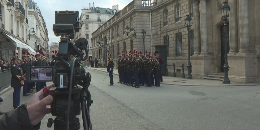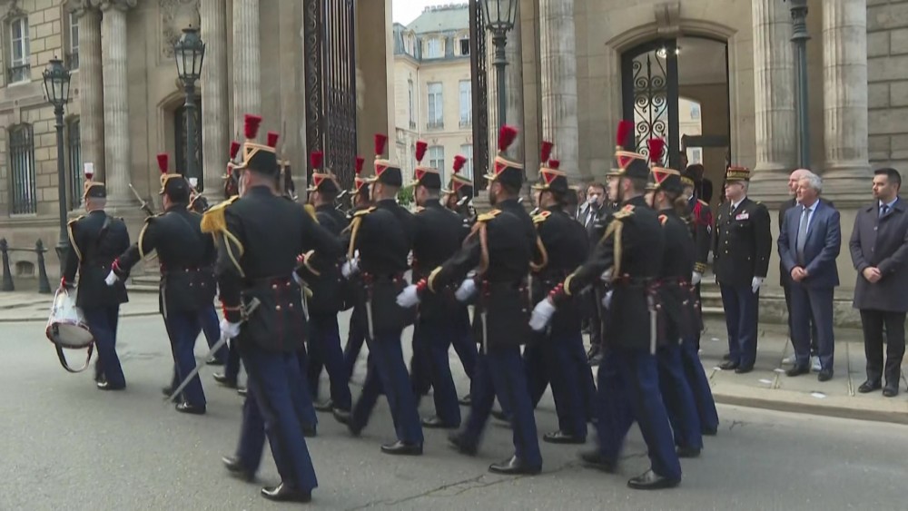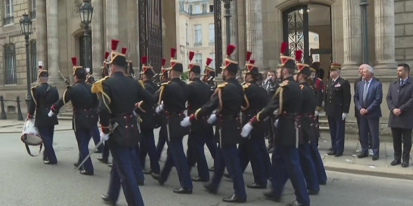 The Elysee palace in Paris, home to the French presidency, said Sunday it will bring back a public changing of the guard ceremony, 27 years after it was last held. For the first time since 1996, the 1st Infantry Regiment of the Republican Guard performed the changing of the guard in front of the Elysee Palace in the presence of French President Emmanuel Macron.