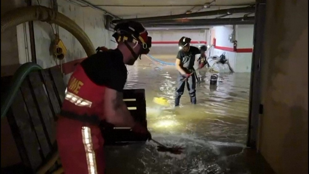 Emergency teams worked through the night on Ibiza to clear floodwater from airport access roads, underground car parks, and residential areas, a day after torrential rains disrupted travel on the island for the second time in two weeks. The heavy rainfall, driven by Storm Alice, flooded the airport and submerged roads, causing dozens of flight cancellations and delays.
