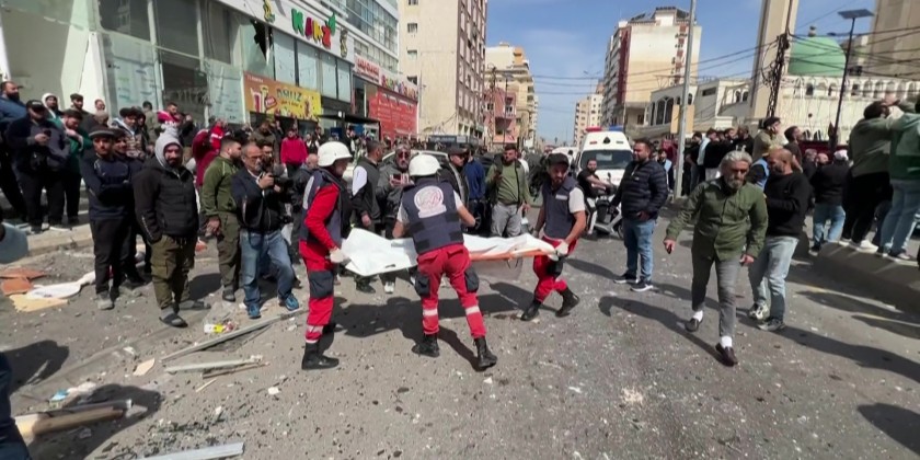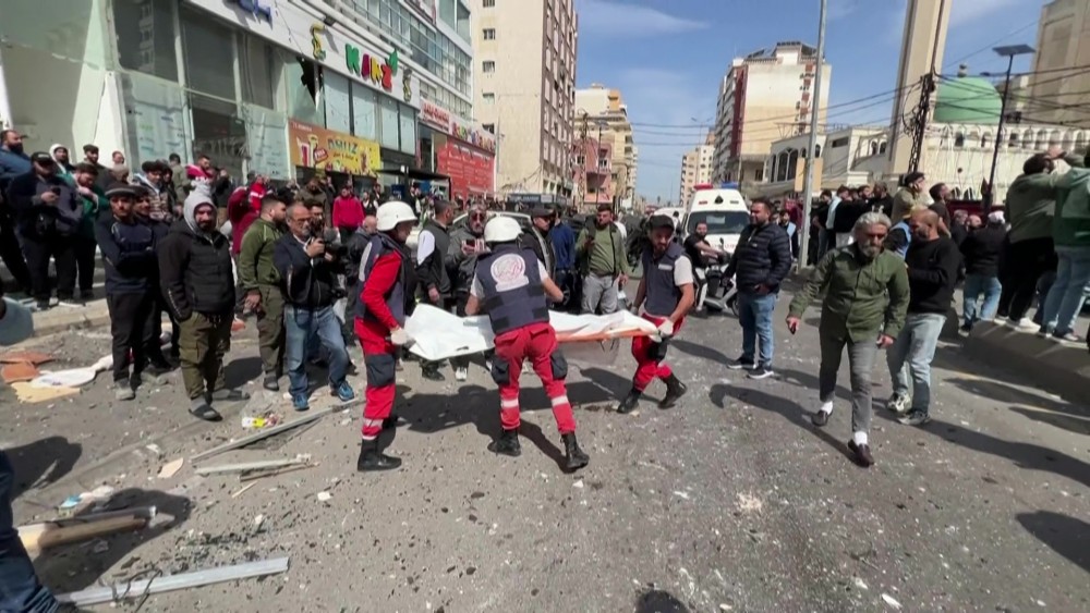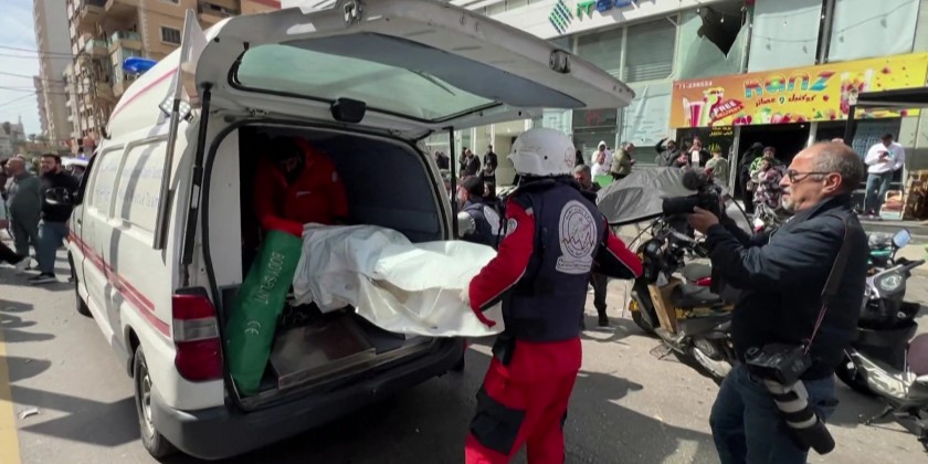 Emergency workers retrieved bodies and collected remains after an Israeli airstrike hit an office building in the southern Lebanese city of Sidon. The Lebanese health ministry reported that five people were killed and seven were wounded in the attack. The strike occurred as the Middle East conflict continued into its seventh day, with ongoing Israeli airstrikes targeting locations in Lebanon and Iran.
