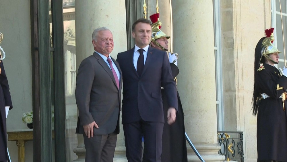 French President Emmanuel Macron welcomed King Abdullah II of Jordan to the Élysée Palace in Paris. The visit comes as part of ongoing diplomatic engagements between Jordan and France. The two leaders are expected to discuss bilateral relations, regional developments, and areas of mutual cooperation.