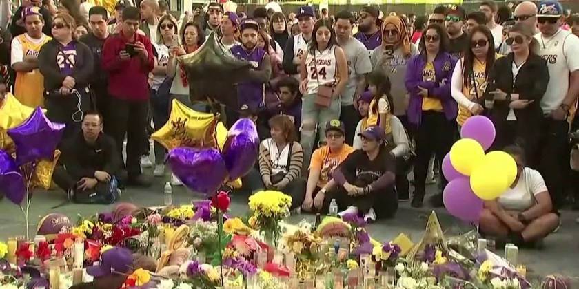 Emotional scenes at Kobe Bryant memorial in Los Angeles