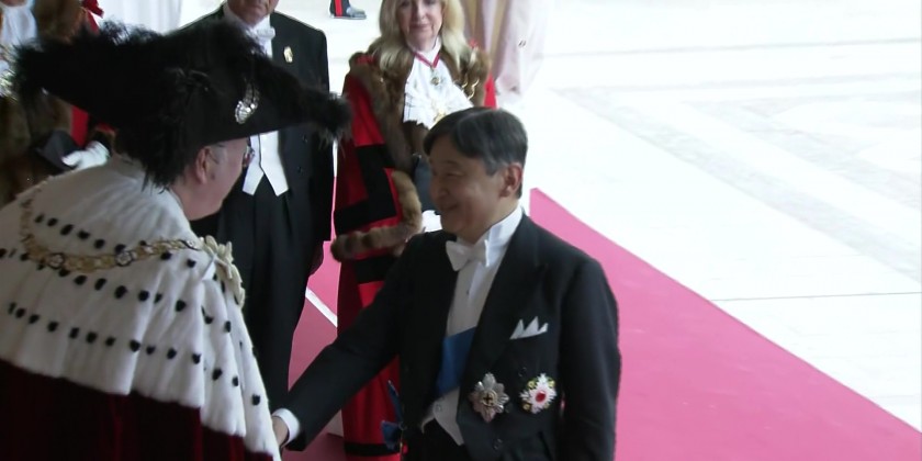 Japan's Emperor Naruhito has attended a welcome banquet on Wednesday in London's financial district during his state visit to Britain.