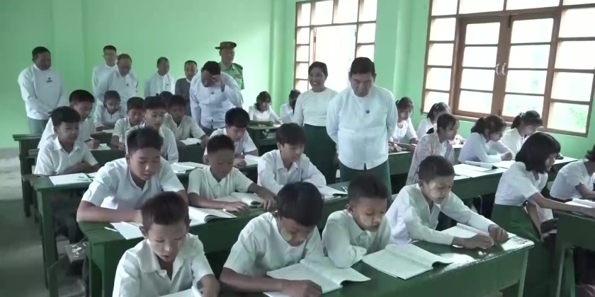 Rakhine State Chief Minister U Htein Lin, along with members of the state government and relevant departmental officials, visited basic education schools in Sittwe in the morning on June 2, to observe and encourage the peaceful learning environment of the students.