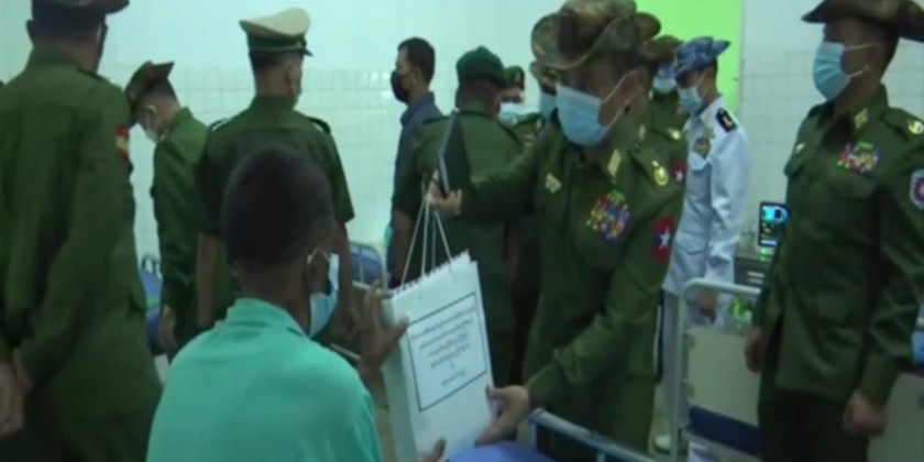 The Vice-Chairman of the State Administration Council Deputy Commander-in-Chief of Defence Services Commander-in-Chief (Army) Vice-Senior General Soe Win Tuesday morning comforted officers, other ranks and families receiving medical treatment at the military hospital in Sittway.
