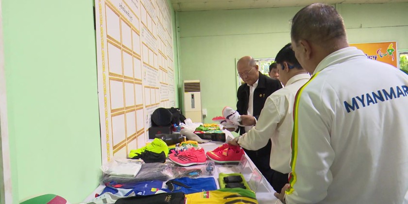 They warmly greeted them, offered encouragement, and delivered motivating words. Subsequently, the Union Minister and officials inspected the assistive devices to be used in competition and the displays of sport-specific competition uniforms set up in the meeting hall of the Myanmar Paralympic Sports Federation.