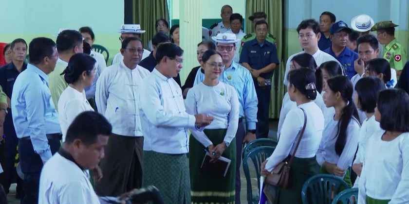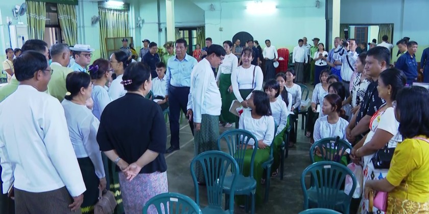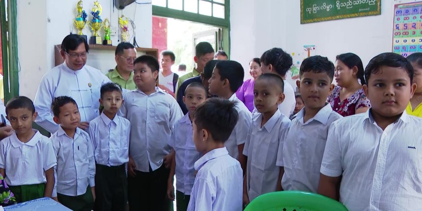 First, the Chief Minister U Soe Thein and region ministers visited Basic Education High School No. (1) in Dagon Township and Basic Education High Schools No. (5) and No. (6) in Botahtaung Township to observe and support the student enrollment process for the 2025–2026 academic year. During the visit, Deputy Director General Dr. Cho Cho Myat Aung from the Yangon Region Education Office and the respective school principals briefed them on the enrollment procedures. They also warmly greeted the students and parents who came to enroll.