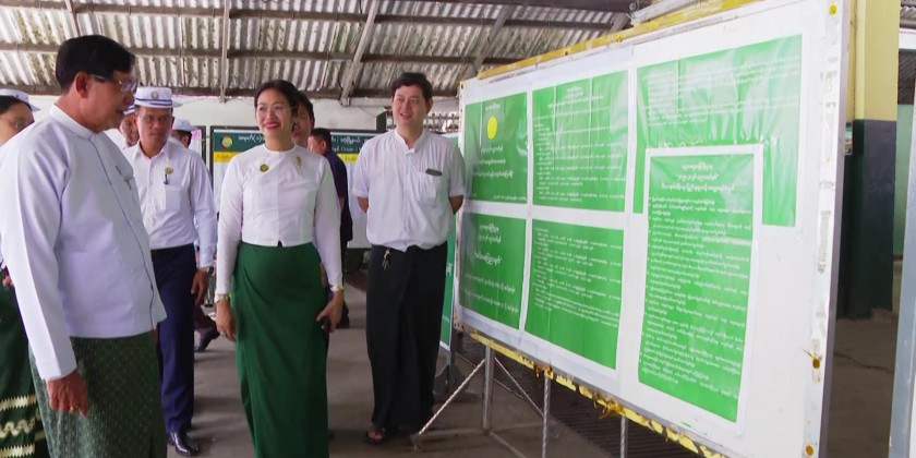 Yangon Region Government Chief Minister U Soe Thein and Region Government Ministers observed the student enrollment process for the 2025–2026 academic year at Basic Education High School No. (1) in Dagon Township, Basic Education High School No. (5), and Basic Education High School No. (6) in Botahtaung Township in the morning on May 26.