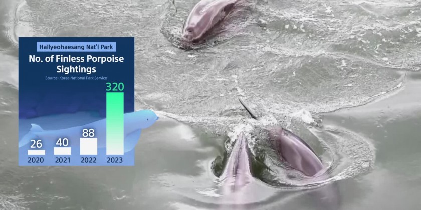 Sightings of finless porpoises have been increasing over the past four years. Despite being a protected marine animal since 2016, many still die as bycatch. The Korea National Park Service plans to inform fishermen and increase patrols to protect their habitats.