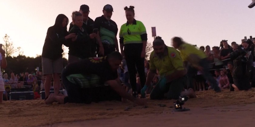 Endangered baby turtles released at Australia beach