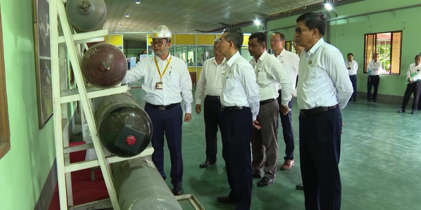 The Union Minister for Energy U Ko Ko Lwin together with the Yangon Region Minister for Natural Resources U Zaw Win and officials from the Ministry inspected motor vehicle used natural gas center in Insein Township and CNG station (032) and met with the managers of CNG stations in Yangon Region on 28th April.