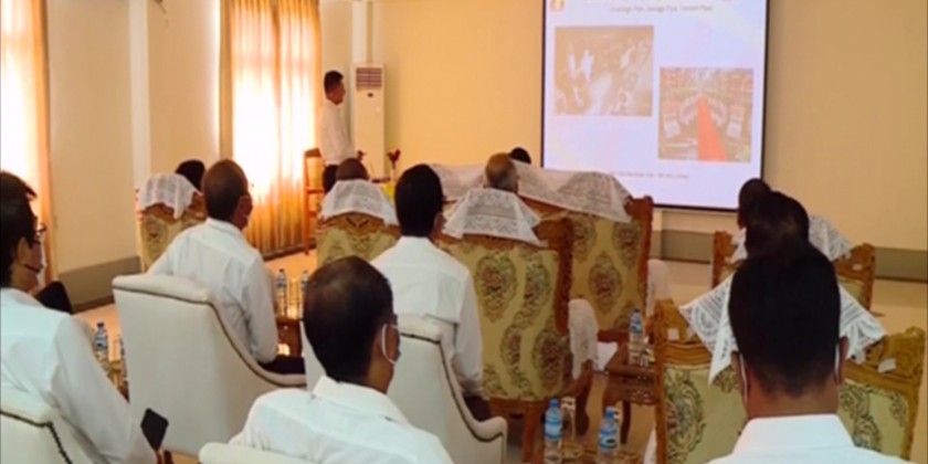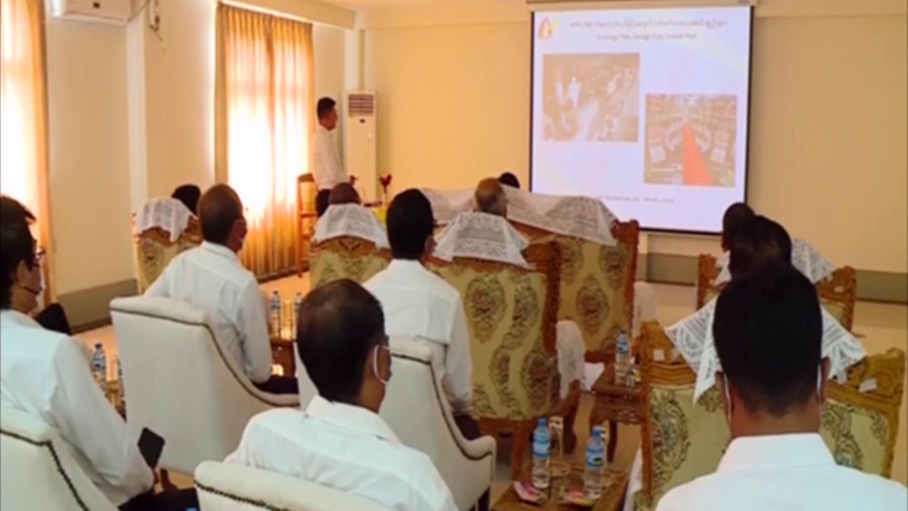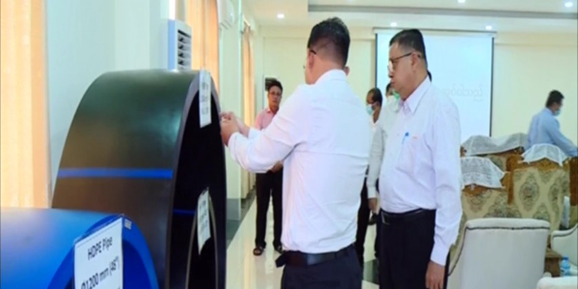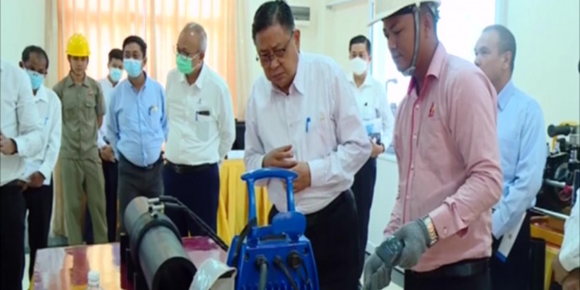 Union Minister for Energy U Myo Myint Oo together with the officials inspected the HDPE (High Density Polyethylene) production factory of Authentic Production Co., Ltd. and the works undertaking of the Applied Research Department (Htaukkyant) of Myanma Oil and Gas Enterprise in Mingaladon Township in the morning on June 3.