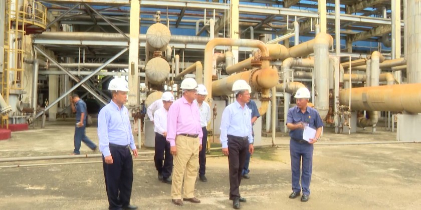 The Union Minister and party later proceeded to No. 5 Fertilizer Factory and met with the staff. The officials presented about the operation process of the factory, and the Chief Minister elaborated that the increasing fertilizer productivity will improve the crop yield per acre which will bring benefits for the farmers.