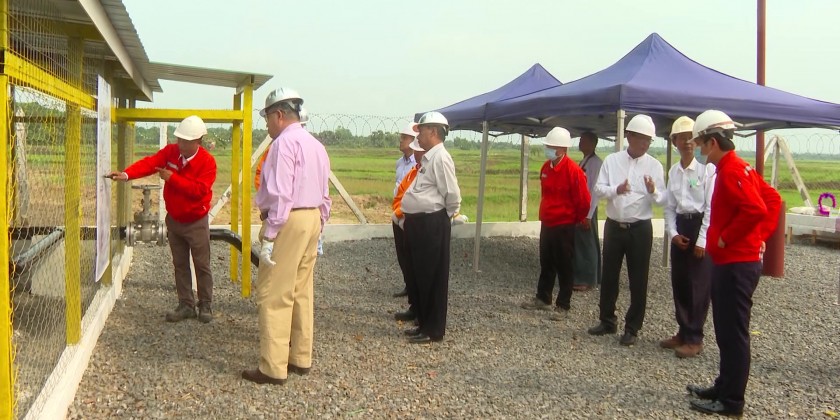 Union Minister for Energy U Myo Myint Oo, together with Ayeyawaddy Chief Minister U Tin Maung Win and responsible officials, inspected the completion status of the Valve Station on the Nyaungdon-Thabaung natural gas pipeline route by Myanmar Oil and Gas Enterprise on Sunday.