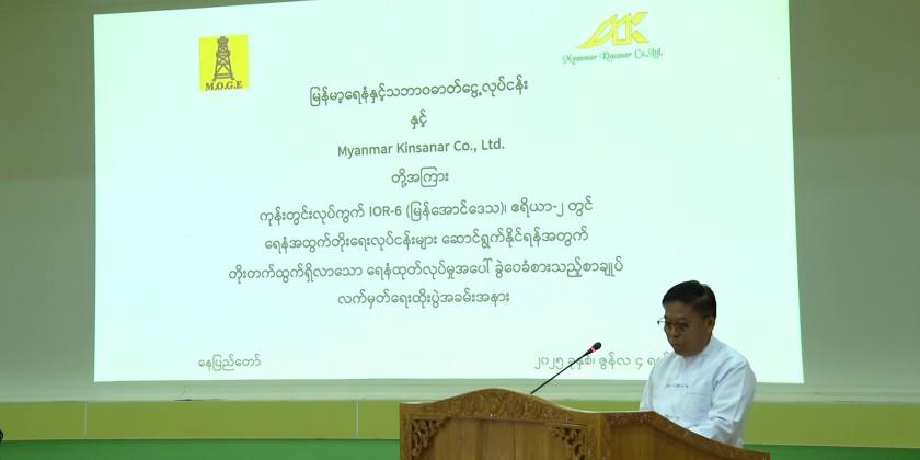 Union Minister for Energy U Ko Ko Lwin attended the ceremony, and made an opening speech, before witnessing the signing of the contract. According to the MOU, oil exploration in the Area-2 of Inland Plot IOR-6 in Myanmar area will be accelerated.