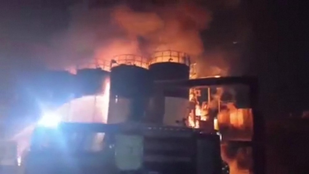 Engine oil refinery catches fire in northwest Iran