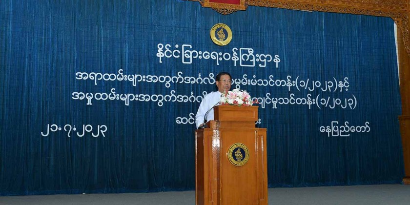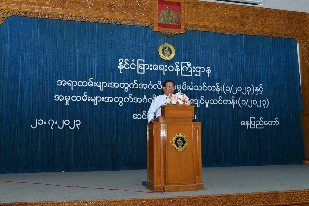Union Minister for Foreign Affairs U Than Swe delivered the closing speech at English Refresher Course for Officials (1/2023) and English Proficiency Course for Staff (1/2023), which was held at the Law Ka Nat Hall, Ministry of Foreign Affairs, Nay Pyi Taw, at 10:00 a.m. on 21st July.