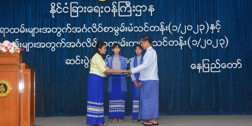 At the closing ceremony, U Ko Ko Hlaing, Union Minister for Ministry of International Cooperation, U Kyaw Myo Htut, Deputy Minister for Foreign Affairs, Director-Generals, Deputy Director-Generals, Officials from the Ministry of Foreign Affairs, Lecturers from Naypyitaw State Academy and trainees were also presented.