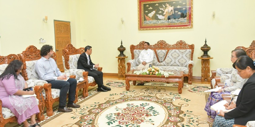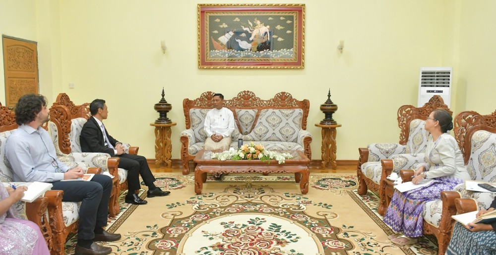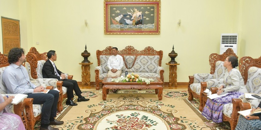 Union Minister for Social Welfare, Relief and Resettlement Dr. Soe Win met with UNICEF Myanmar Representative Mr. Yasumasa Kimura at the Ministry on August 7.