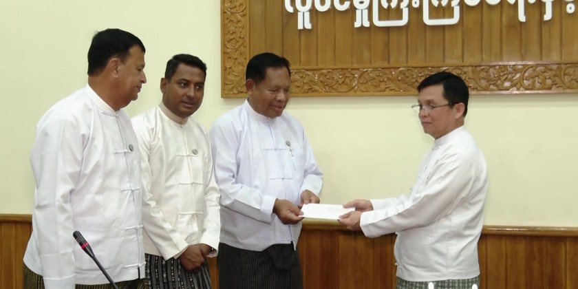 After making clarification on current working processes of the association by the Chairman of India-Myanmar Friendship Association, the Union Minister coordinated the requirement. Later, the Union Minister accepted cash donations contributed by the association for earthquake affected departmental staff and returned the certificates of honour.