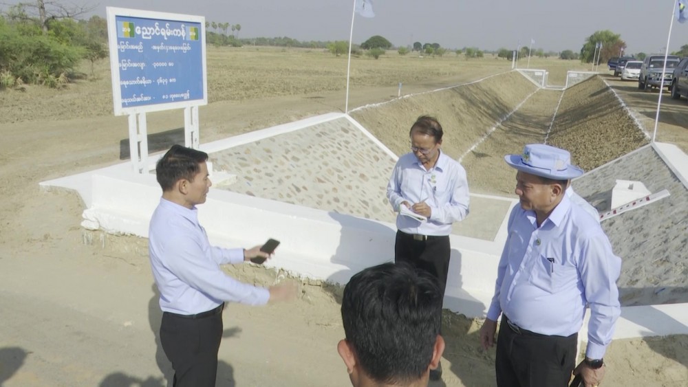 The Ministry of Agriculture, Livestock, and Irrigation is implementing measures to optimize irrigation facilities for bolstering crop production. In Thazi Township, the ministry is currently undertaking repair works on feeder canals at Nyaung Yan Min-Hla Lake. On the 5th of February, Union Minister U Min Naung visited the project site to inspect the progress of the work.