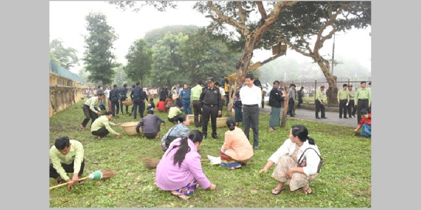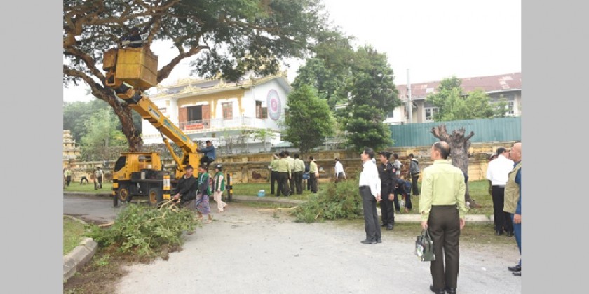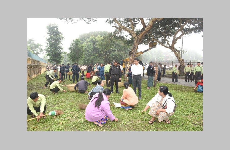 There, the Chief Minister overviewed the cleaning bushes and weeds, clearing branches and garbage from drains carried out by Tatmadawmen, members of Myanmar Police Force, Fire Bridgade and Red Cross Society, departmental officials and local residents and provided nutritious food.