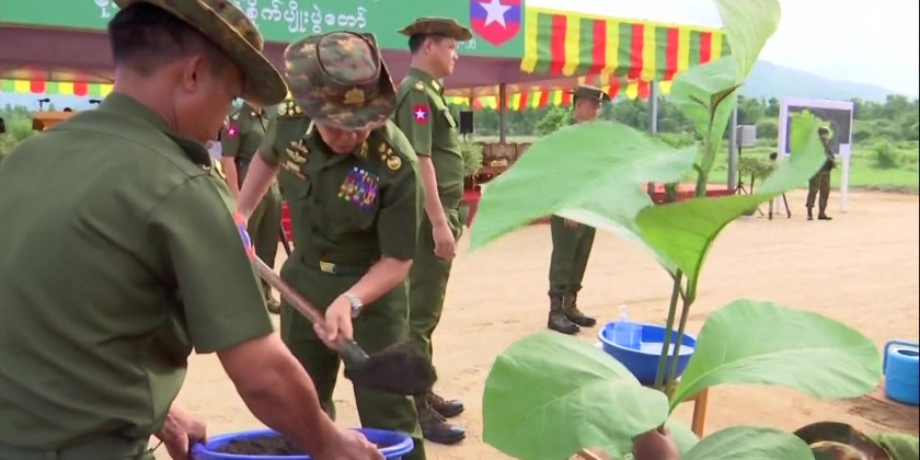 Following the speech, the planting of teak trees and various saplings took place at designated locations. A total of 2,400 saplings were planted during the event in Nay Pyi Taw. The families of the Commander-in-Chief Office (Army, Navy, Air) have been organizing tree planting events since 2011, and this event marked the 42nd such occasion.