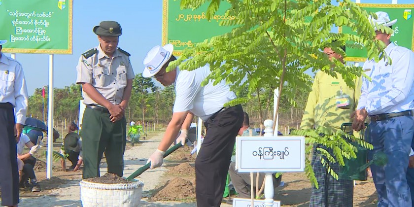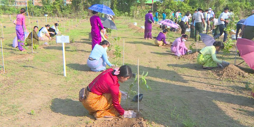 Kachin State Chief Minister U Khet Htein Nan and related officials participated in the event by planting over 430 trees. The Chief Minister and party also heard the report on the number of trees which will be planted during the pre-monsoon tree-planting ceremony and future work processes.