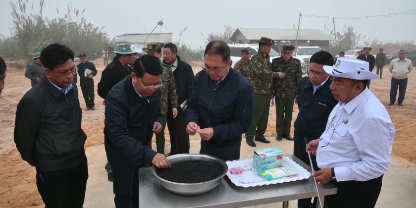 Union Minister for Natural Resources and Environmental Conservation U Khin Maung Yi, accompanied by relevant officials, inspected a mining site near Kyaing Latt Town, Tachileik Township, Shan State (East), on January 25. During the inspection tour, responsible officials explained the ongoing work and related situations.