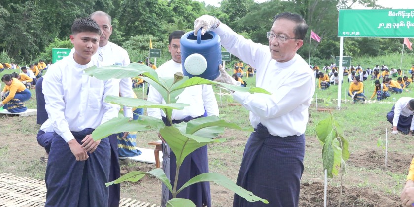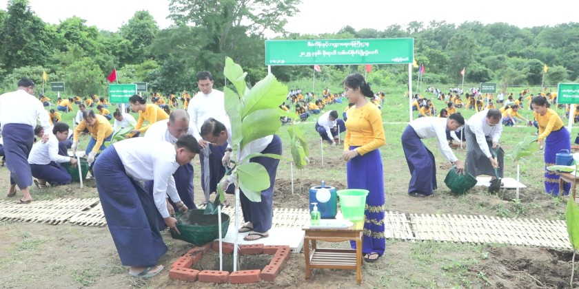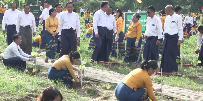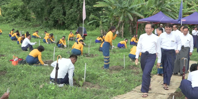 Deputy Prime Minister and Union Minister U Win Shein, along with deputy ministers, department heads, and staff, participated in planting over 1,000 teak trees at designated sites as part of a national campaign. The Deputy Prime Minister also inspected and encouraged the tree planting activities.
