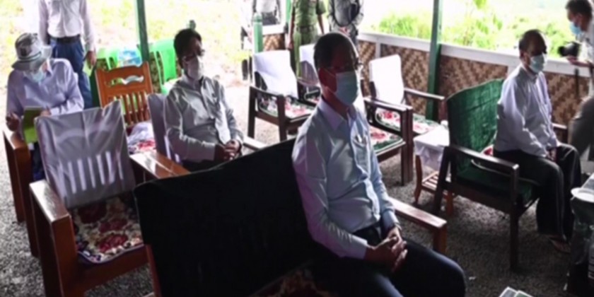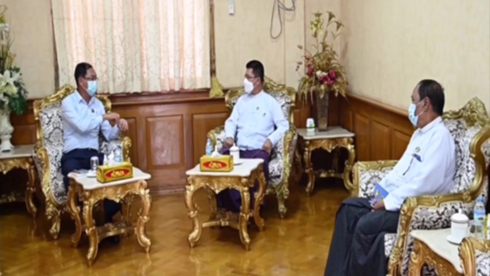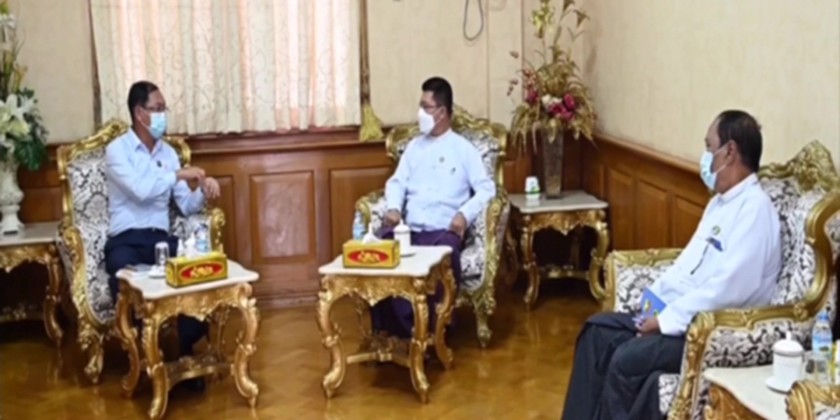 Union Minister for Natural Resources and Environmental Conservation U Khin Maung Yi accompanied by officials met the chief minister and the region minister for natural resources at the Ayeyawady Region government office in Pathein Township of Ayeyawady Region Thursday morning.