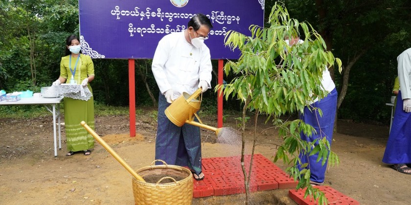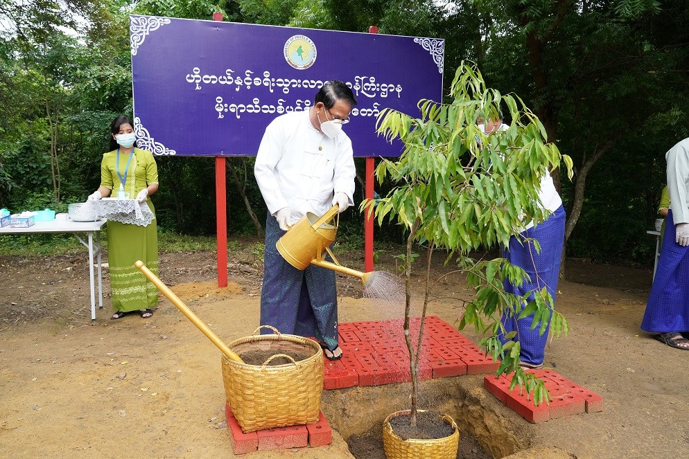 The Ministry of Hotel and Tourism’s 2021 Environmental Greening Activity Monsoon Season Tree Growing Ceremony was held near the plant nursery of the ministry, Nay Pyi Taw at 9 a.m. on Friday and the Union Minister U Maung Maung Ohn and wife attended the ceremony and planted Gantgaw tree.