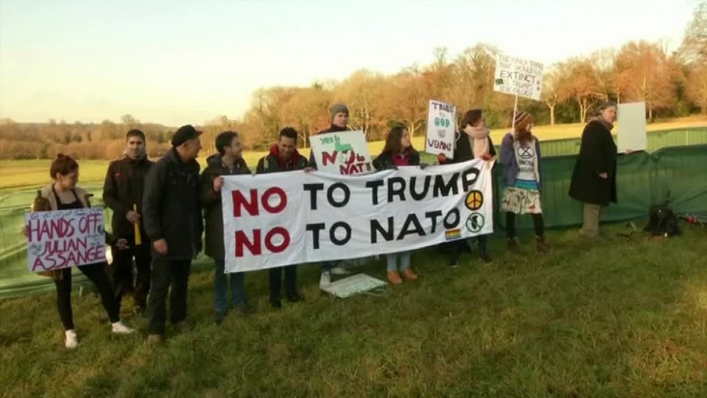 Environmental protesters took to a field near the NATO summit venue in Watford on Wednesday. They were angry at the defense alliance's presence in the northwest London suburb. Freya Freeman-Taylor said she was protesting because NATO was incredibly destructive and had a negative impact on the environment and on human rights. While most of the protesters were made up of concerned citizens and members of environmental or anti-war organizations, one prospective parliamentarian was also there - despite his avowed support for NATO. One of the protesters told reporters he stood by the Labor party's policy to support the organization, but was there to support climate activists and protest the presence of U.S. President Donald Trump.