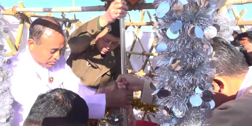 Later, the Sasana flags holders, ethnic people, holders of the shaft to hold the umbrella of the pagoda, Chief Minister, Commander, State Ministers and well-wishers circled the pagoda in clock-wise direction, Chief Minister, Commander, State Ministers and well-wishers erected the shaft to hold the umbrella of the pagoda, sprinkled with scented water and erected white umbrella atop the shaft, it’s reported.