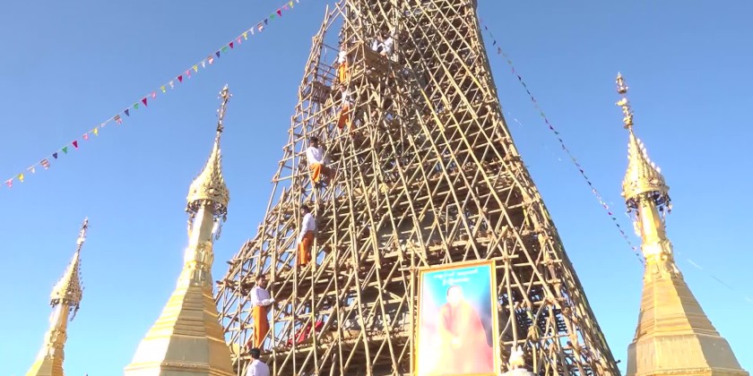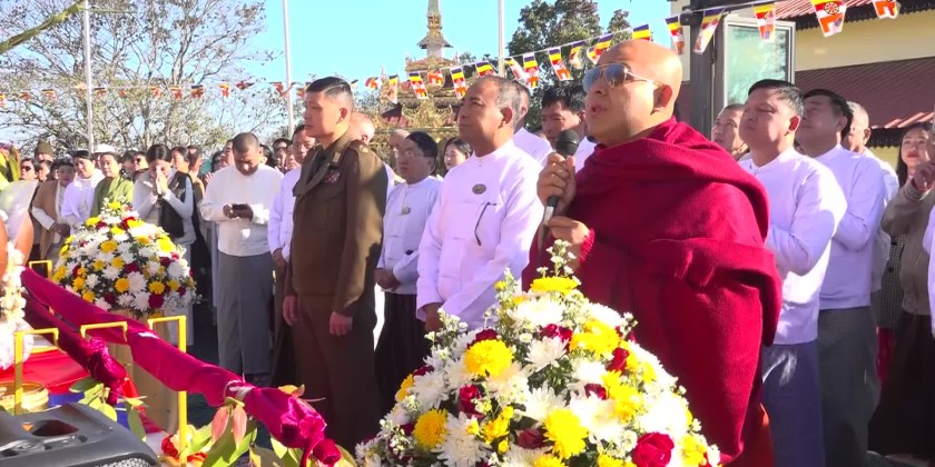 Erecting shaft of pagoda umbrella: Shan State CM and Commander attended the ceremony