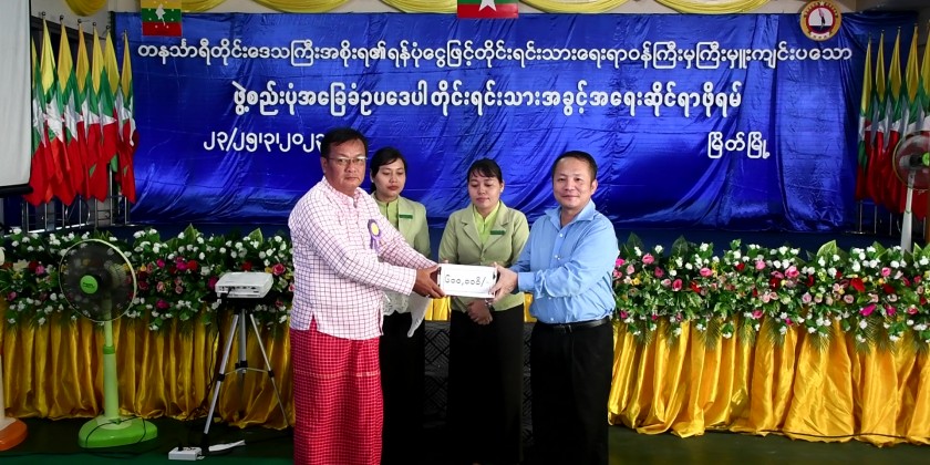 And, the Deputy Minister and officials presented 600,000 kyats each to Kayin, Mon, Moken (Salon) and Tanintharyi Literature and Culture committees and donated 750,000 kyats to the Myeik Catholic Christian Church. Tanintharyi Regional Minister for Ethnic Affairs Saw Martin Lu Thar presented honorary gifts to Kachin State Minister for Ethnic Affairs U Kyaw Min Khaing and Kayin State Minister for Ethnic Affairs U San Ko.