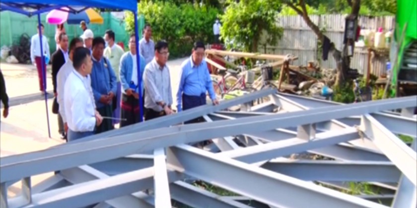 Union Minister for Ethnic Affairs U Saw Tun Aung Myint on Saturday afternoon inspected construction of a jetty and steel bridge installation at the Union National Races Village (Yangon) in Thaketa Township.