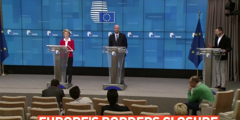 European Union leaders agreed on Tuesday to close Europe's borders for 30 days to prevent the spread of coronavirus but establish fast-track lanes at their countries' frontiers to keep goods moving, bloc leaders said after a video-conference summit. EUROPEAN COMMISSION PRESIDENT, URSULA VON DER LEYEN said "All the measures that have been taken on the health side - which are correct to contain the virus - we see that they have a huge impact on our economy. This is an external shock and it hits the whole world. We have never had that before. The enemy is the virus and now we have to do our utmost to protect our people and to protect our economies."