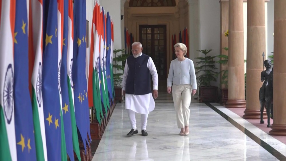 European Commission President held talks with India's Prime Minister Narendra Modi in New Delhi. EU President is on a two-day trip to India with her college of commissioners. The delegation aims to deepen its diplomatic and trade ties with the world's fifth-largest economy. India has long pushed the EU for higher investments, co-ventures with local partners and more streamlined migration for its skilled workforce of IT professionals, engineers and healthcare workers.