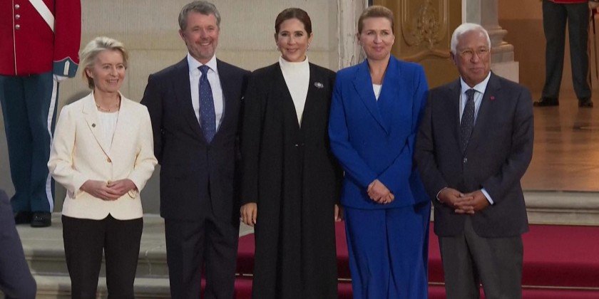 Denmark King Frederik and Queen Mary hosted a glittering dinner for EU heads of state and government for a dinner at Amalienborg Palace in Copenhagen.