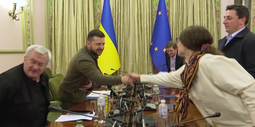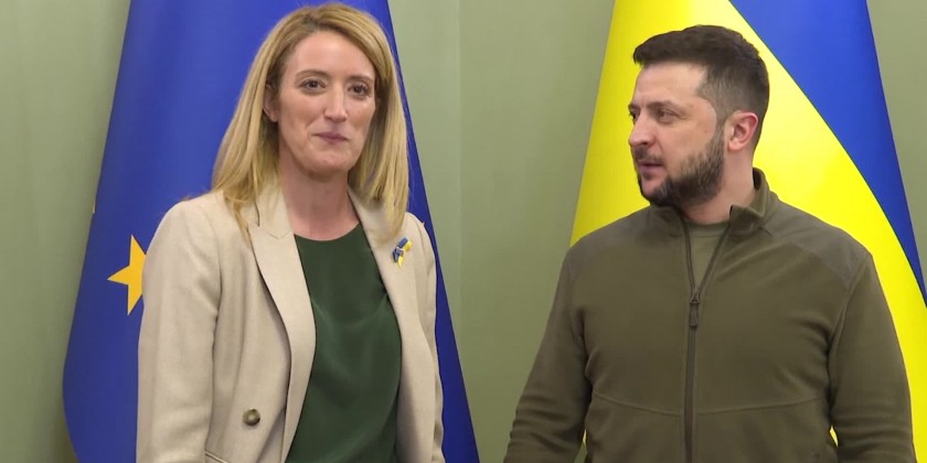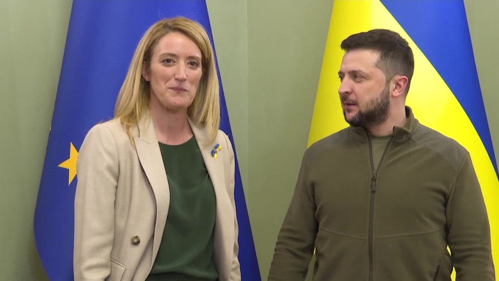 European Parliament President Roberta Metsola thanked Ukrainian President Volodymyr Zelenskyy for fighting "fundamental principles that this continent have for so many centuries defended" during her visit to Kyiv on Friday. Zelenskyy said he was grateful that the European Parliament delegation traveled to Ukraine during the conflict. Metsola said Ukraine was considered a part of the European family.