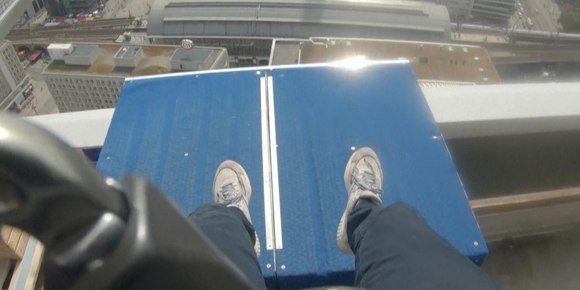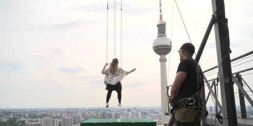 The contraption on top of a hotel next to Berlin's famous TV tower is a novel way to take in the city with a dose of adrenaline thrown in. Once strapped into a harness, customers are propelled forward so that when they are at the high point of the swing, there is nothing between them and the ground 120 metres below.