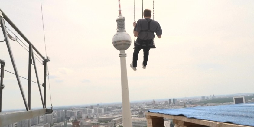 Billed as the highest in Europe, a swing on the roof of a 120 metre hotel becomes the Berlin's newest tourist attraction.