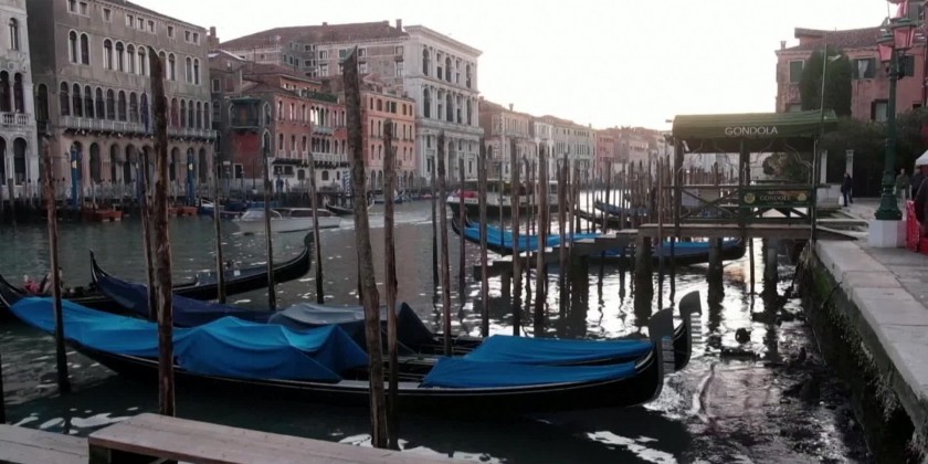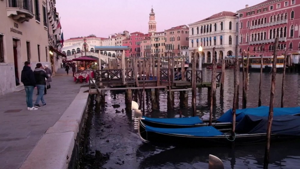 Exceptional low tide leaves Venice's canals almost empty