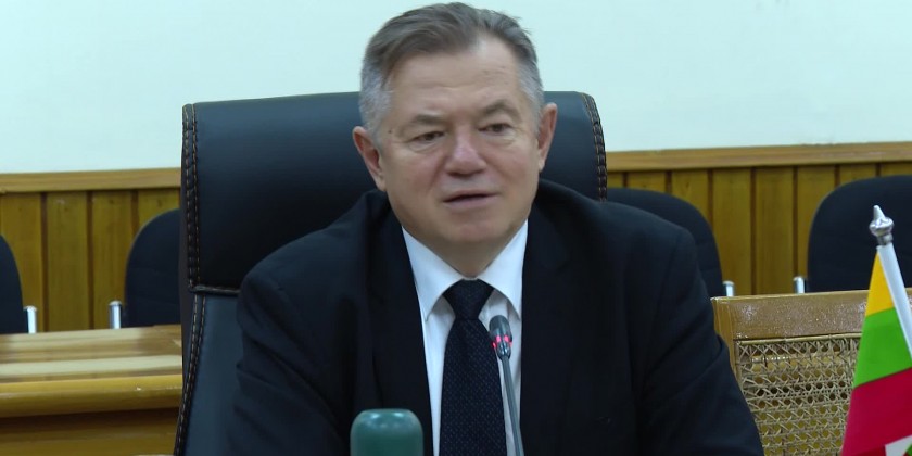 Union Minister for Energy U Ko Ko Lwin received a delegation led by Member of the Board (Minister) for Integration and Macroeconomics Mr. Sergei GLAZEV from the Eurasian Economic Commission at the Ministry in Nay Pyi Taw in the evening on 10th April.