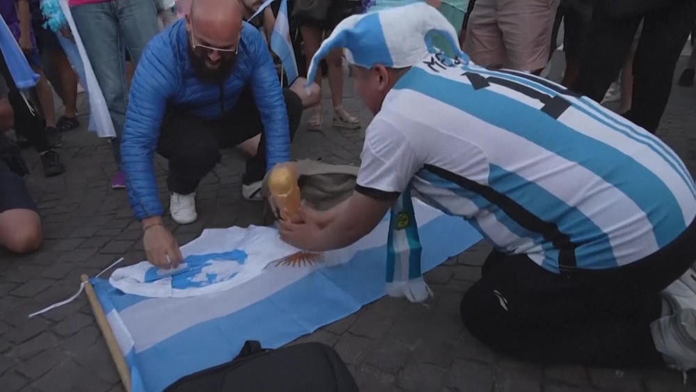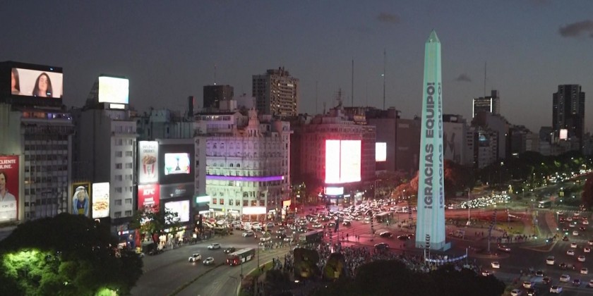 Buenos Aires fans gathered around the city's landmark Obelisk on Saturday to say their final cheers for the national team before the match against France on Sunday.