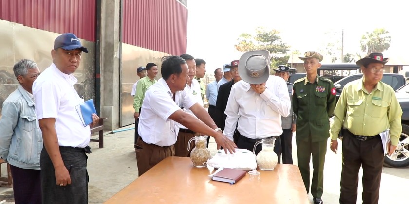 Bago Region Chief Minister U Myo Swe Win, accompanied by government officials, conducted an inspection tour in Taungoo Township on the morning of February 3 to support the expansion of high-value, export-oriented Paw-Hsan rice cultivation and regional development projects.
