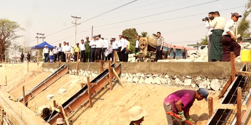 First, the Chief Minister inspected and encouraged the pre-cultivation preparations for contiguous plots of export-oriented, high-value, aromatic Paw-Hsan rice meeting designated acreage targets in the Htan Taw village group, Taungoo Township. He then inspected the ongoing Taungoo bypass railway construction and coordinated to address the necessary requirements.