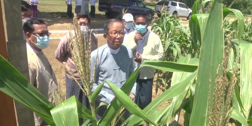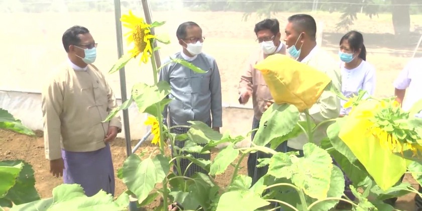 In order to be able to successfully carry out the tasks, he called for implementation of a contract farming system between farmers and private entrepreneurs. The Union Minister and party later viewed the cultivation of sunflower and maize. Earlier in the day, the Union Minister and party inspected the chose site to implement the mechanized farming project in SharTaw Village-tract and supply of irrigation water in ShaukKone, KyarThayEai and NweYit Villages.